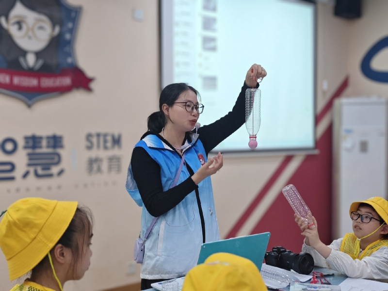 出發(fā)前,金智慧科技志愿服務(wù)隊(duì)的老師為孩子們進(jìn)行了詳細(xì)的知識(shí)導(dǎo)入,講解了自制打水器的原理與制作步驟。隨后,孩子們迫不及待地拿起材料,開始動(dòng)手制作自己的打水器。從切割塑料瓶到固定吸管,每一步都凝聚著他們的智慧與汗水。最終,一個(gè)個(gè)形態(tài)各異的打水器在孩子們的手中誕生。