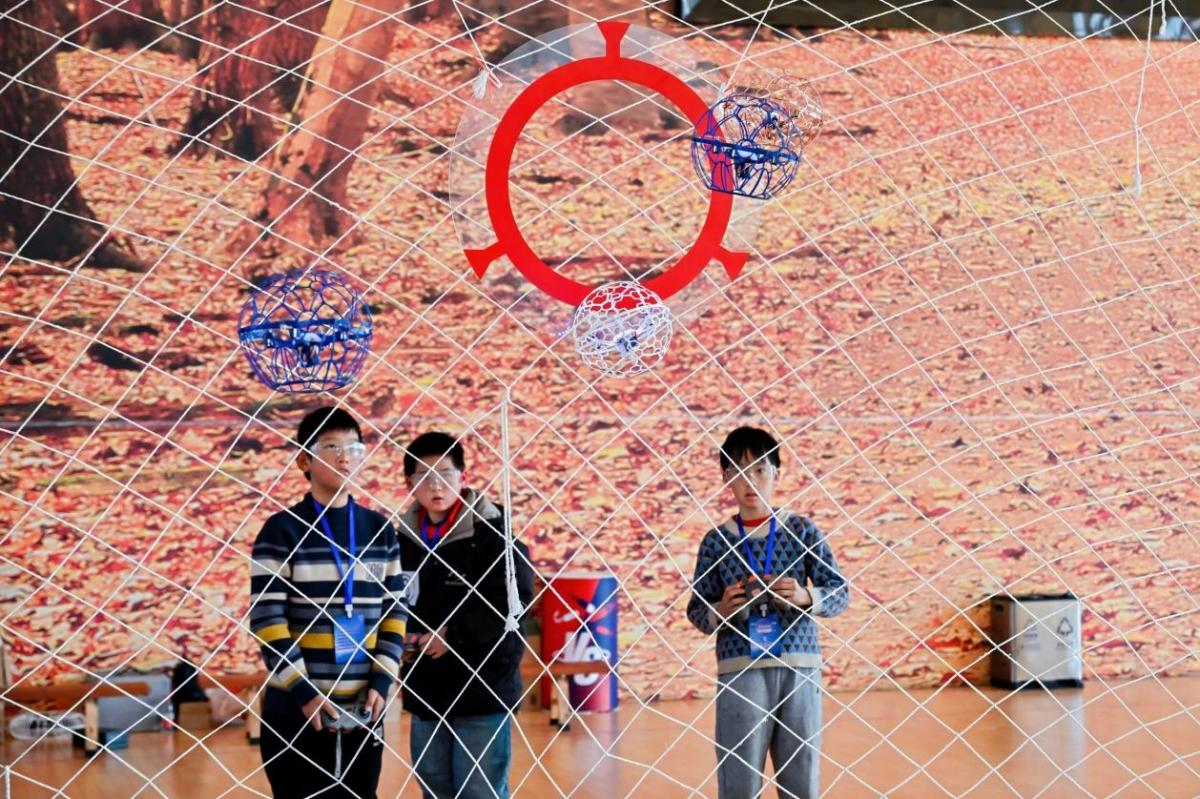 無人機飛行賽場堪稱“速度與精準的較量”。極速任務(wù)賽(個人賽)中,小學(xué)低段選手雖稚氣未脫,卻神情專注地操控?zé)o人機穿梭于障礙之間;高段選手則憑借嫻熟技巧,快速完成航線飛行與任務(wù)挑戰(zhàn)。球形無人機對抗賽里,小學(xué)高段和中學(xué)組隊伍默契配合,操控設(shè)備展開攻防對決,靈活走位與精準操控盡顯扎實的團隊協(xié)作能力。無人機格斗賽更是精彩紛呈,選手們在規(guī)定區(qū)域內(nèi)精準避讓、主動出擊,每一個精彩操作都引來全場喝彩。