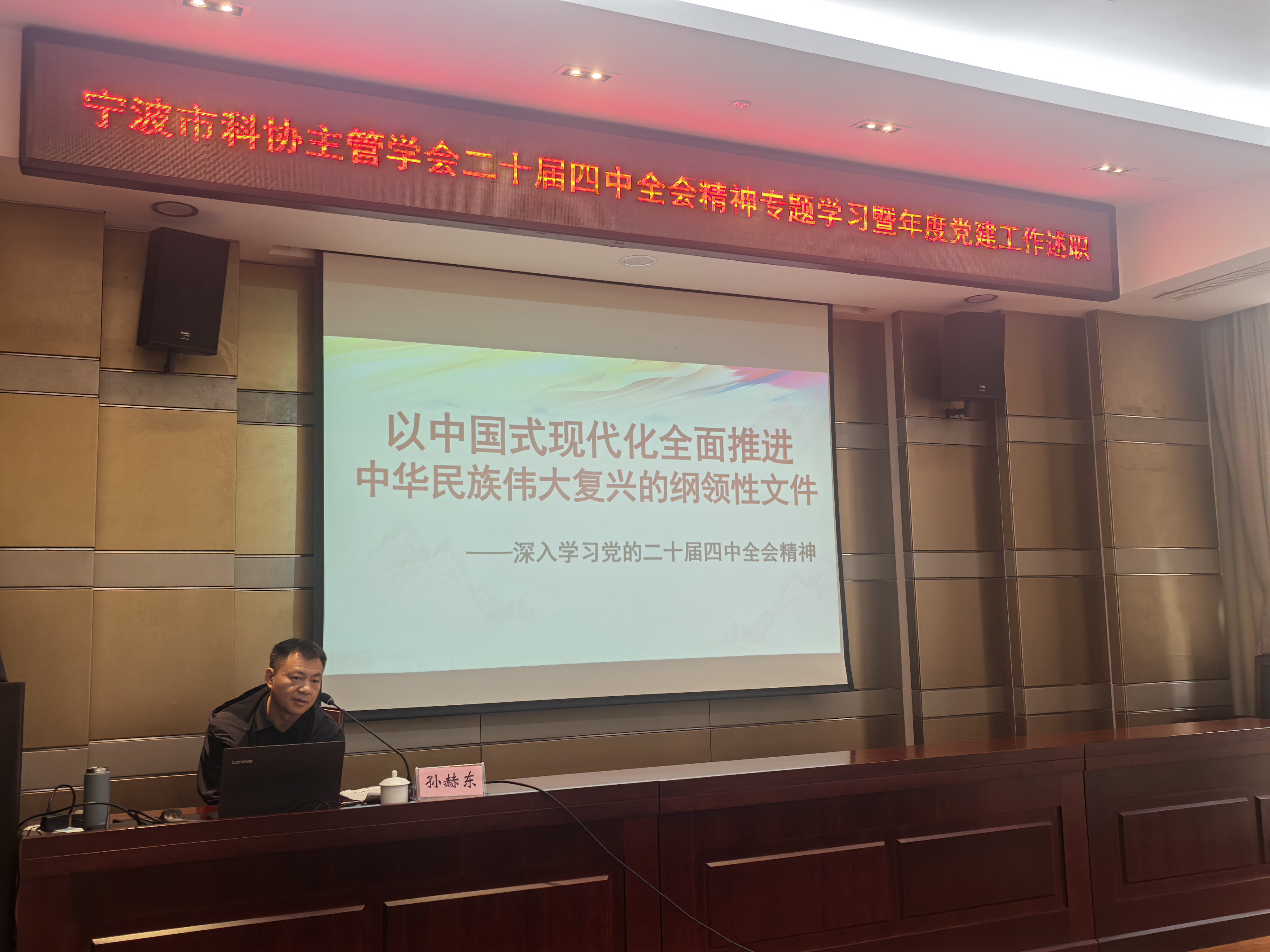 1月16日,寧波市科協(xié)舉辦主管學(xué)會二十屆四中全會精神專題學(xué)習(xí)暨年度黨建工作述職活動。市科協(xié)科技社團(tuán)黨建領(lǐng)導(dǎo)小組成員和27家主管學(xué)會黨組織負(fù)責(zé)人參加活動,共同深入學(xué)習(xí)全會精神,總結(jié)交流黨建工作,謀劃下一階段重點任務(wù)。